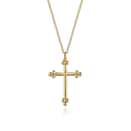 Elevate your jewelry collection with this timeless and elegant 14K Yellow Gold Bujukan Cross Necklace....