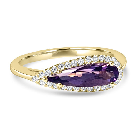 This exquisite 14K Yellow Gold Amethyst Pave Halo Ring is a true statement of elegance....