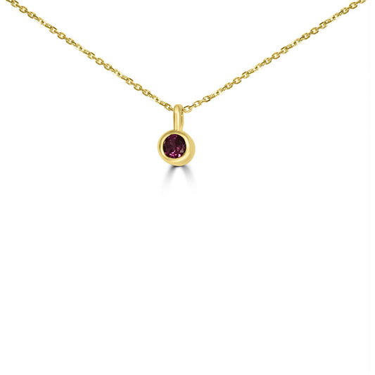 This stunning 14K Yellow Gold 4MM Bezel Garnet Necklace is a timeless piece of jewelry...
