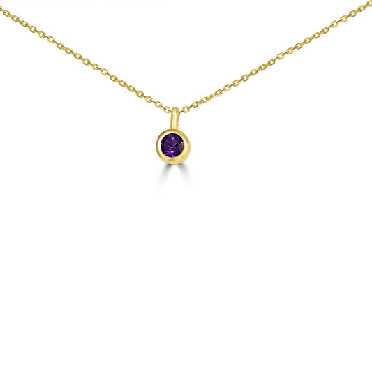 This stunning 14K Yellow Gold 4MM Bezel Amethyst Necklace is the perfect blend of elegance...