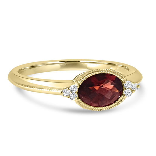 This exquisite 14K Yellow Gold Milgrain Bezel Ring features a stunning oval garnet, elegantly set...