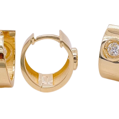 Elevate your style with our 14K Yellow Gold Bezel Set Diamond Wide Huggie Earrings. These...