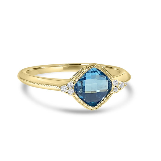 This stunning 14K Yellow Gold Bezel Set Cushion Blue Topaz Ring combines classic elegance with...