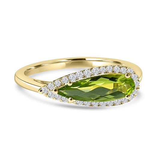 Elevate your style with these stunning 14K Yellow Gold Pear Shaped Peridot and Diamond Drop...