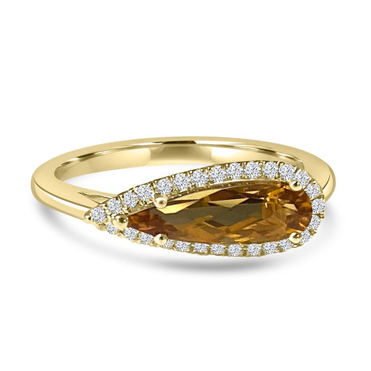 This stunning 14K Yellow Gold Citrine Pave Halo Ring features a captivating pear-cut citrine gemstone,...