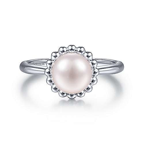A stunning pearl is enhanced with a sterling silver beaded halo. Perfect for a June...