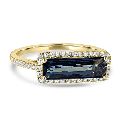 Introducing our exquisite 14K Yellow Gold London Blue Topaz Pave Halo Ring—a captivating blend of...