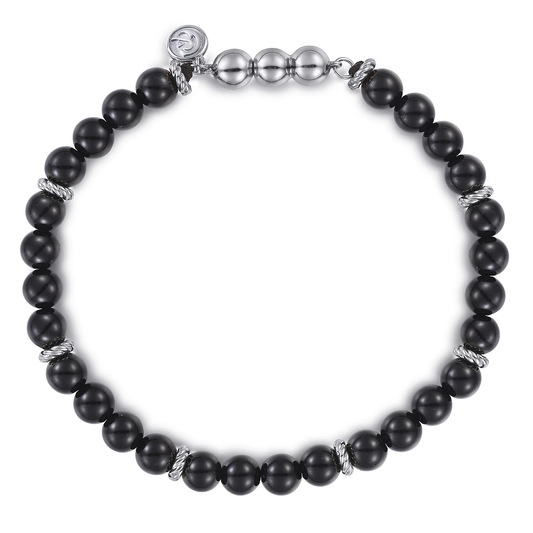 Elevate your style with this handcrafted 925 Sterling Silver and 6mm Black Onyx Beaded Bracelet,...