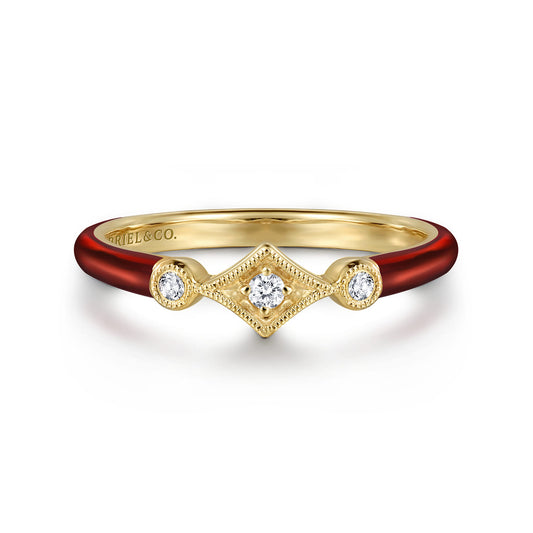 Bold color meets refined sparkle in this 14K yellow gold diamond split stackable ring with...