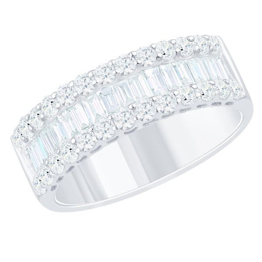 This stunning 14K white gold band showcases 1.35 carats of dazzling diamonds across three elegant...