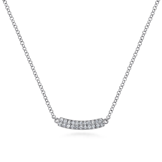 Elevate your everyday elegance with this 14K white gold curved pavé diamond double bar necklace....