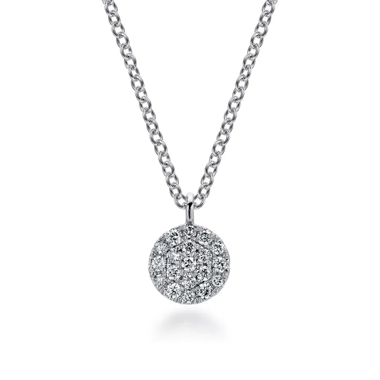Add subtle sparkle to your look with this 14K white gold round pavé diamond disc...