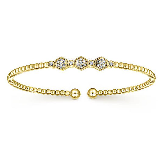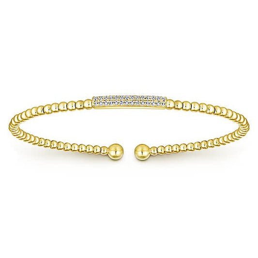 Classic elegance meets modern craftsmanship in this two-tone diamond bangle. Crafted in 14K yellow gold...