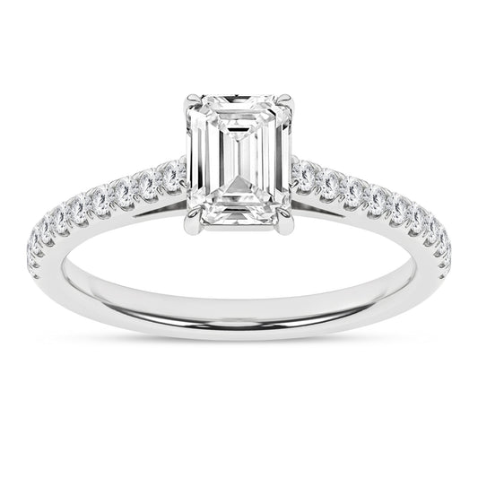 Embrace classic elegance with our Classic Emerald-Cut Lab-Created Diamond Engagement Ring, meticulously crafted in 14KT...