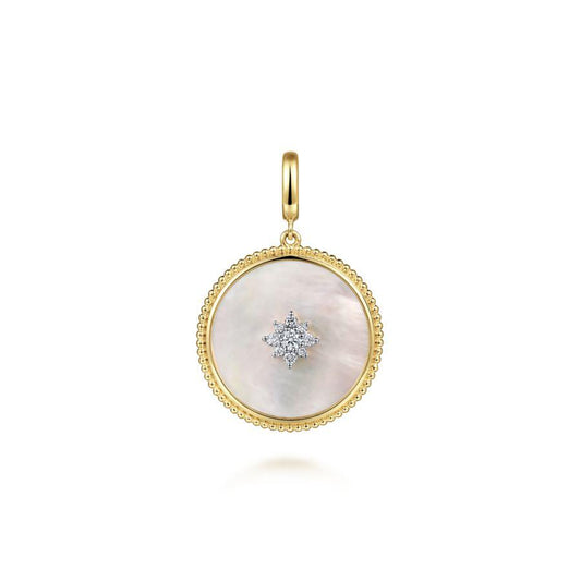 Pair this 14K Yellow Gold Diamond Mother of Pearl Starburst Medallion with one of our...