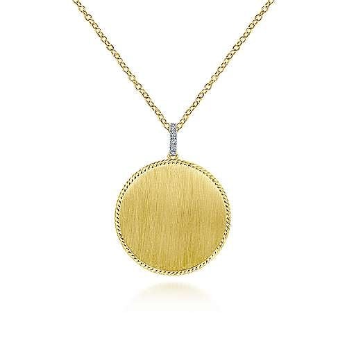 14K Yellow Gold Round Engravable Pendant Necklace approx 32 inches long with Diamond Bale with...