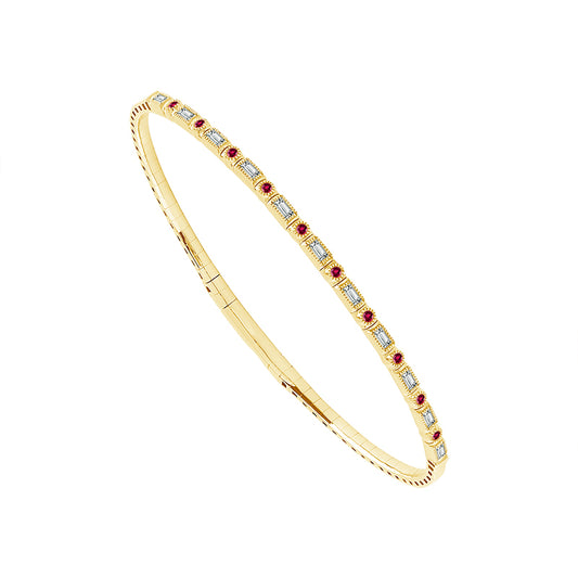 Bold color meets refined sparkle in this 14K yellow gold ruby and diamond flex bangle....
