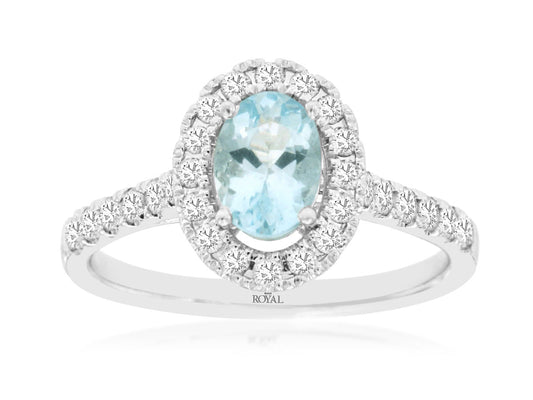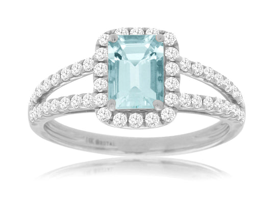 Dive into luxury with this stunning 14K White Gold Aquamarine and Diamond Ring. The centerpiece...