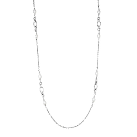 Cultured pearls drop to form these classic sterling silver dangle earrings.