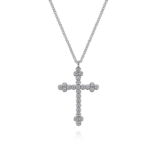 Classic round Lab Grown diamond cross pendant set in 14KT white gold, embellished with 1...