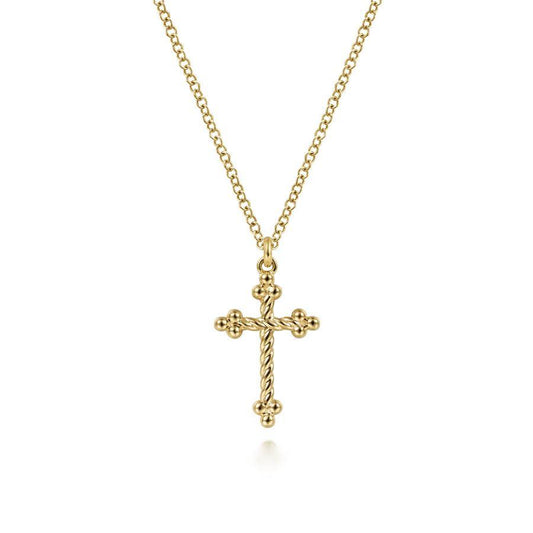 Elevate your style with this stunning 14K Yellow Gold Bujukan Cross Necklace. Crafted with precision...