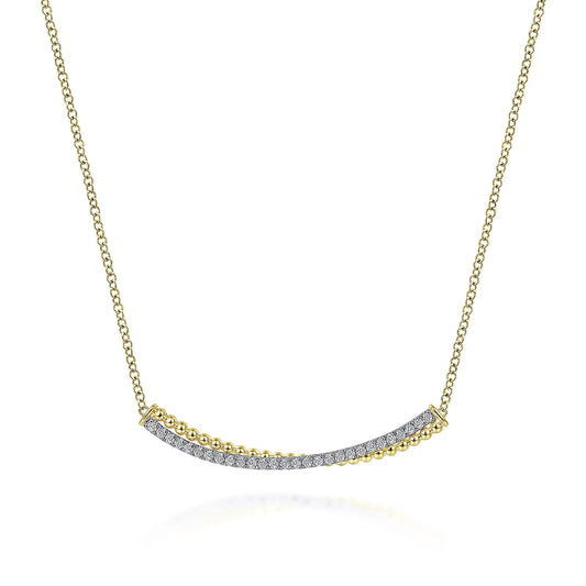 Elevate your jewelry collection with our stunning 14K White Gold Graduating Diamond Wave Bar Necklace....