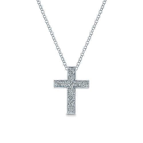 Exhibit your faith and fashion simultaneously with this 14k white gold cross necklace. Curving milgrain...