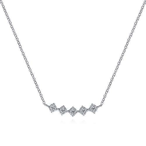 A large curved bar necklace that's totally on-trend. Crafted from 14k white gold and set...