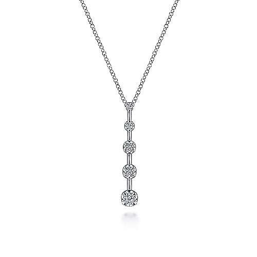 This enchanting diamond necklace is styled in classic 14K white gold and features a breathtaking...