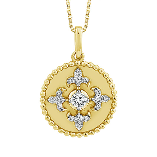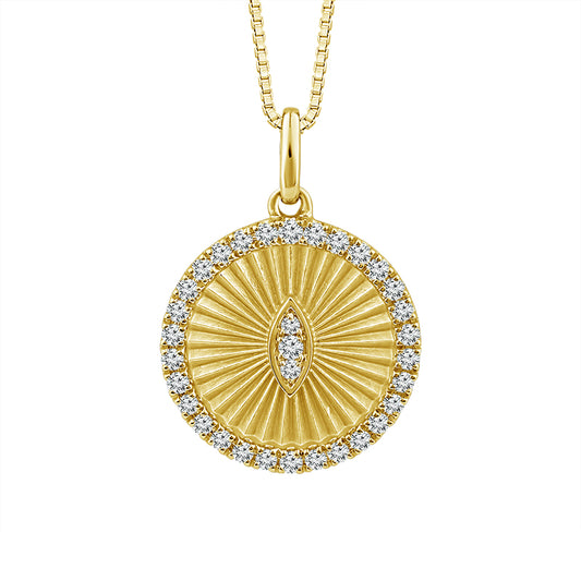 Embrace classic sophistication with this 10K Yellow Gold Diamond Fluted Medallion Necklace. The necklace features...