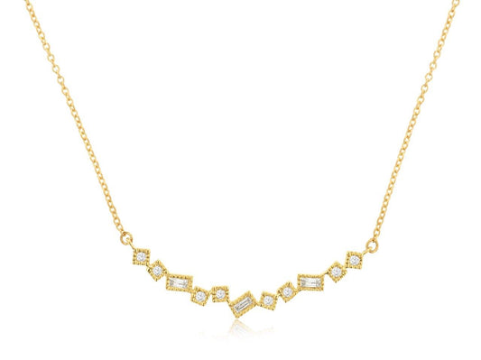 Elevate your style with our Diamond Necklace in Yellow Gold, featuring a unique bar design....