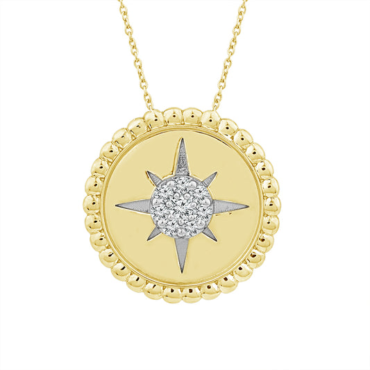 Shine brightly with this enchanting 10K Yellow Gold Diamond Star Medallion Necklace. The necklace features...