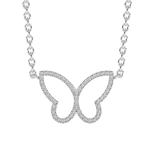 A sparkling statement of metamorphosis, this 14K white gold necklace showcases a twinkling .07ctw pave...