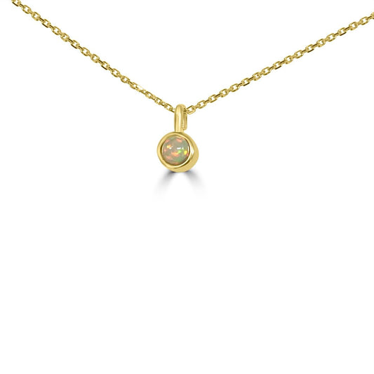 This breathtaking 14KT two-tone pendant showcases a luminous 4.94CT oval opal, bezel-set in warm yellow...