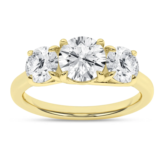 Discover the timeless elegance of our Lab-Created Diamond Ring, a masterpiece featuring three magnificent round-cut...