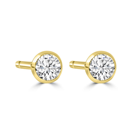 Elevate your style with these stunning 14K Yellow Gold 3MM Bezel White Topaz Studs. Crafted...