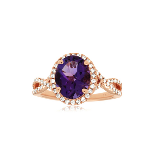 Indulge in the enchanting beauty of our 14K Rose Gold Amethyst and Diamond Ring. This...