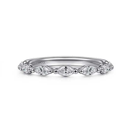 Set in a low setting, seven exquisite marquise diamonds grace the band, each positioned east-west,...