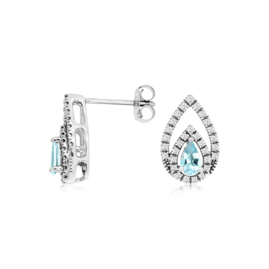 Enhance your elegance with these 14K White Gold Aquamarine and Double Diamond Stud Earrings. Each...
