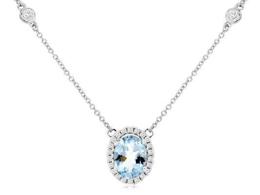 A 1.10ct oval cut aquamarine is the star in this beautiful 14k white gold necklace....