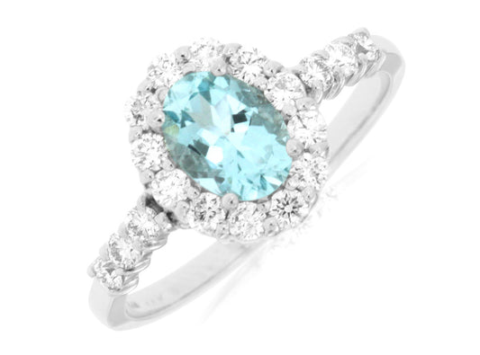 14K White Gold Aquamarine and Diamond Halo Promise Ring
