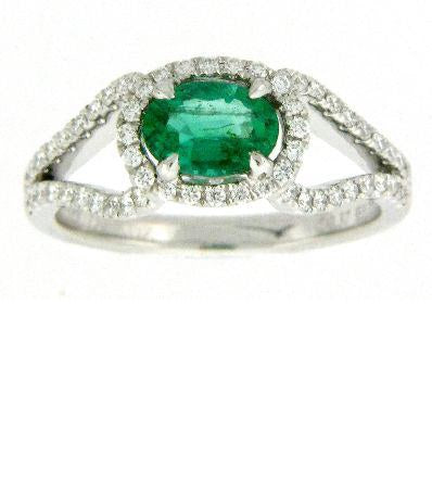 Four oval cut green emeralds (.88ctw) are arranged in a feminine floral design in this...