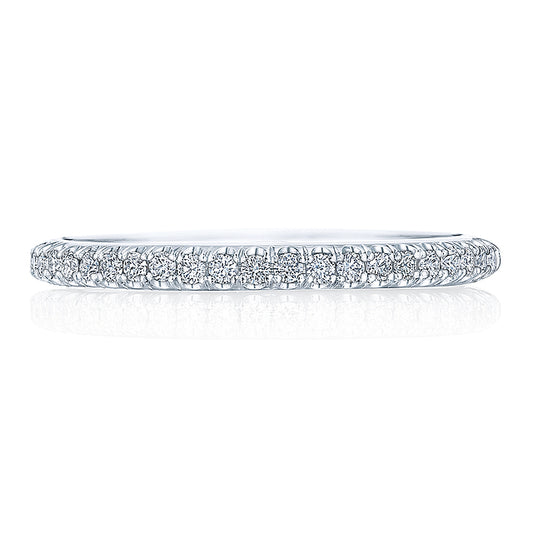 Designed by our Founder, Haig Tacorian, this wedding band features a row of French-pavé set...