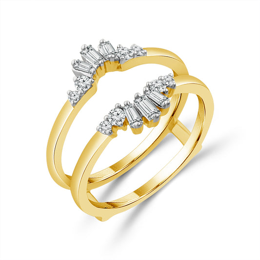 14kt. Yellow Gold round & baguette diamond ring wrap with .33ctw of diamonds.