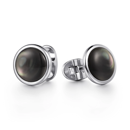 Elevate your formal attire with our exquisite Sterling Silver Black Mother of Pearl Cufflinks. Crafted...