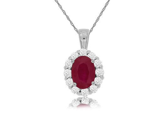 Crafted from luxurious 14k white gold, this timeless necklace boasts a vibrant oval Ruby (0.90ct)...