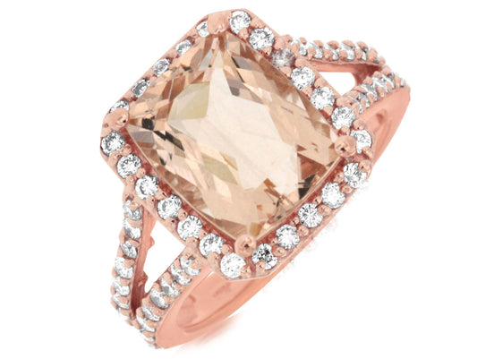 14kt. Rose Gold Cushion Morganite & Pave Diamond Halo Ring. (2.00ct center) (.18ctw)