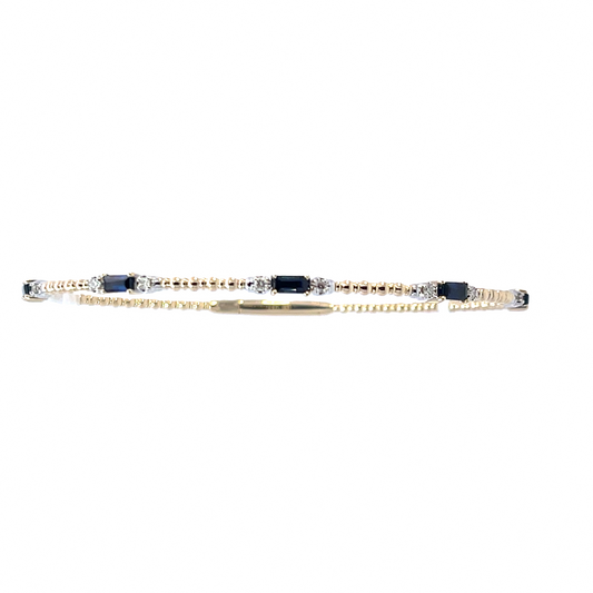 Elevate your look with our exquisite 14K Yellow Gold Sapphire and Diamond Curved Bar Necklace....