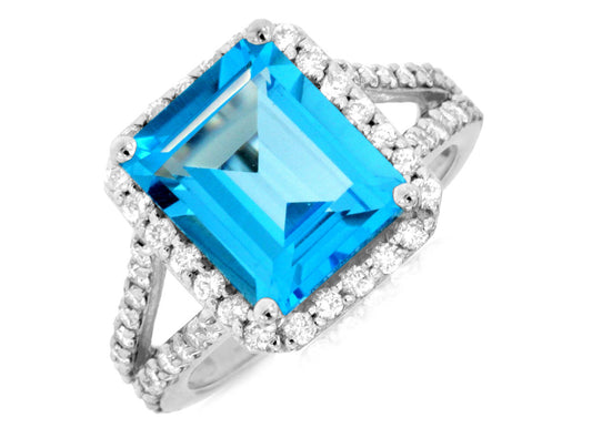Illuminate your style with our 14K White Gold Blue Topaz and Diamond Ring. This stunning...