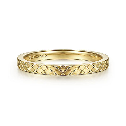 A checkerboard pattern gives 14K yellow gold stackable ring an modern flair. Wear it individually...